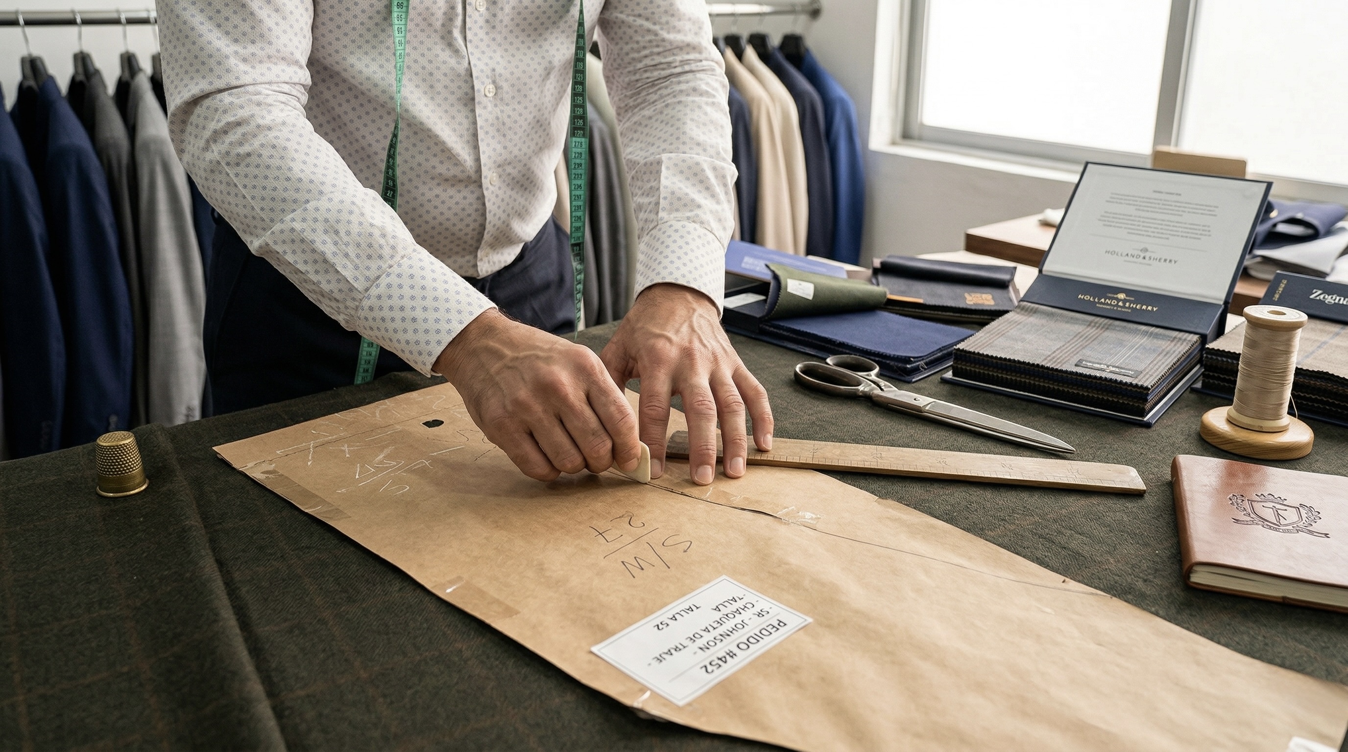 Cada traje empieza con tus medidas. No con un molde.